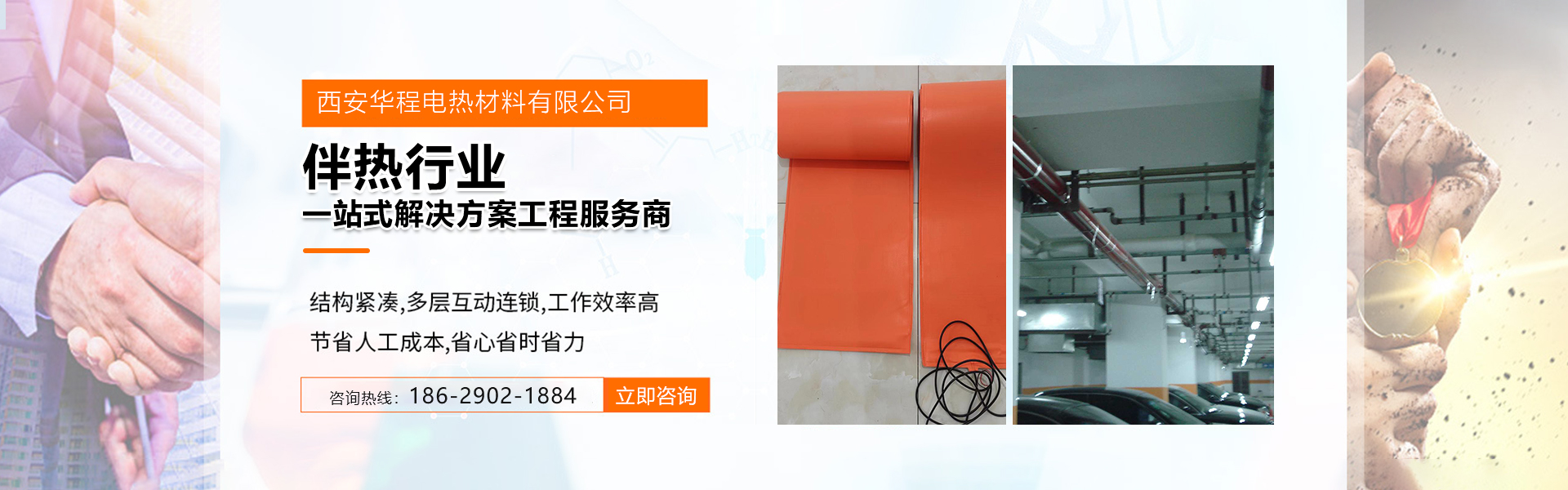 西安华程电热材料有限公司成立于2018年4月21日,专业生产:电热柔性融雪板、电伴热带、发热电缆等电热产品及电热装置。我公司生产的电热产品具有启动电流低、发热迅速、衰减系数小、使用寿命长等特点。我公司还可提供各种天沟融雪、屋顶融雪等领域的设计和施工;各种工程管道、工艺管道、设备、水箱伴热的设计及施工。为客户提供可靠的产品、专业的设计安装、满意的服务是西安华程的宗旨!....