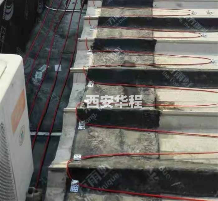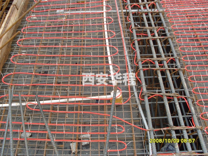 坡道融雪,发热电缆固定于结构钢筋上做法